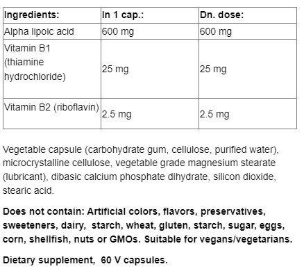 Alpha Lipoic Acid 600 mg + Vitamin B1 and B2 / 60 Vcaps