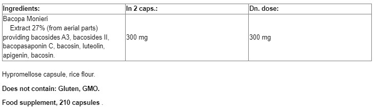 Bacopa Monnieri is renowned for its adaptogenic and antioxidant properties. It helps the body adapt to stress and improves cognitive functions by increasing blood circulation to the brain. This supports memory, concentration, and mental clarity. Additionally, Bacopa has a calming effect on the nervous system, making it ideal for reducing stress and anxiety.