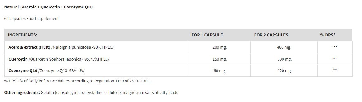 Ingredients: Acerola extract (fruit), Quercetin, Coenzyme Q10