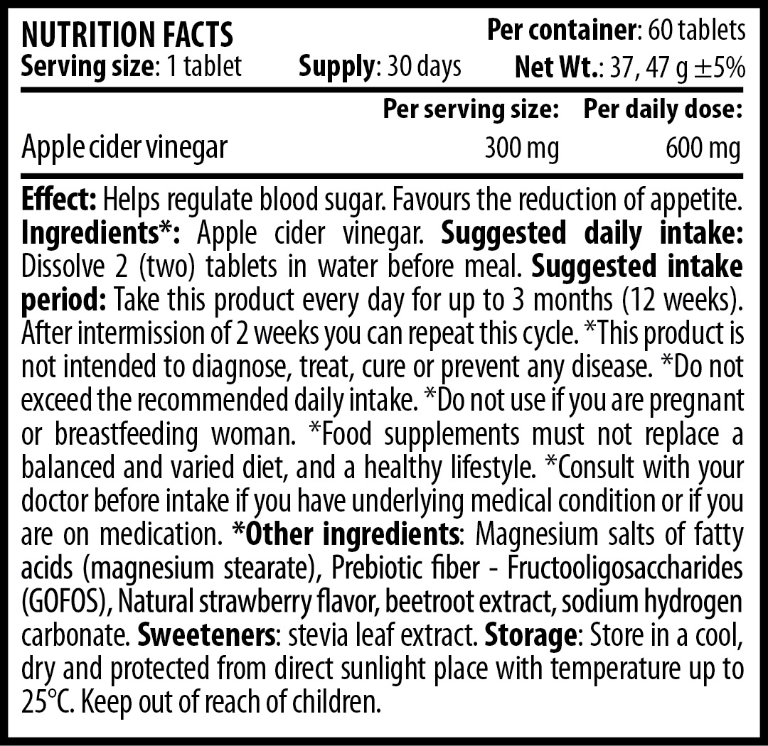 Appetite Stop - Apple Cider Vinegar is specially designed for those seeking a natural way to control their appetite and optimize their health. Apple cider vinegar is well known for its numerous benefits. It contains acetic acid, which helps reduce appetite and supports fat burning. Additionally, apple cider vinegar can improve digestion and regulate blood sugar levels, making it an ideal choice for people with diabetes or metabolic syndrome.