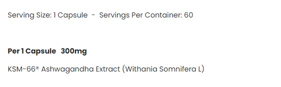 Ingredients: KSM-66 Ashwagandha extract