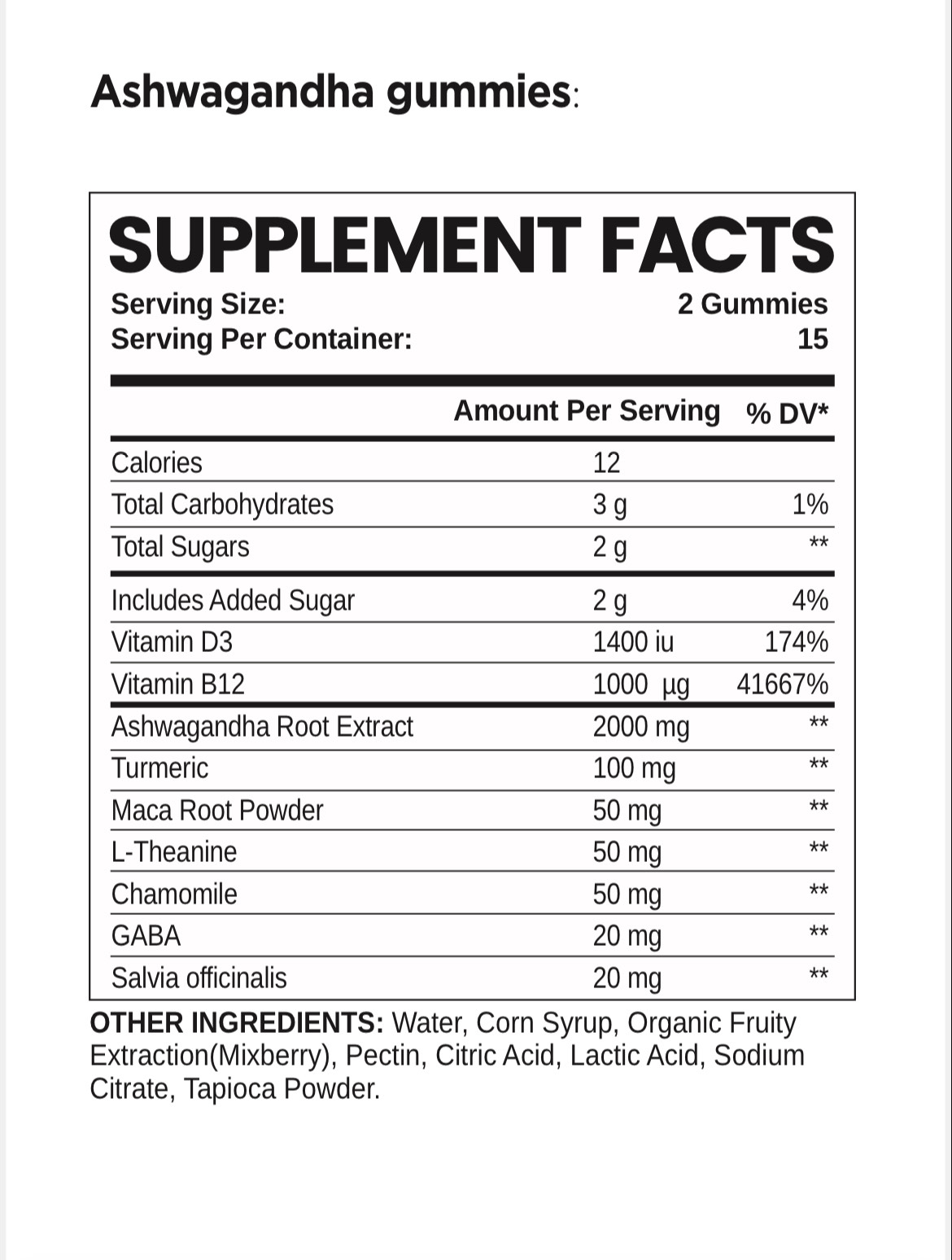Relax by Mybears includes ashwagandha root extract, known for its anti-stress and adaptogenic properties. Maca root powder is another key component that supports energy and endurance. Additionally, turmeric root and chamomile flowers have powerful anti-inflammatory and soothing effects. Furthermore, L-theanine and GABA amino acid support relaxation and cognitive functions, while vitamins D3 and B12 contribute to overall health.