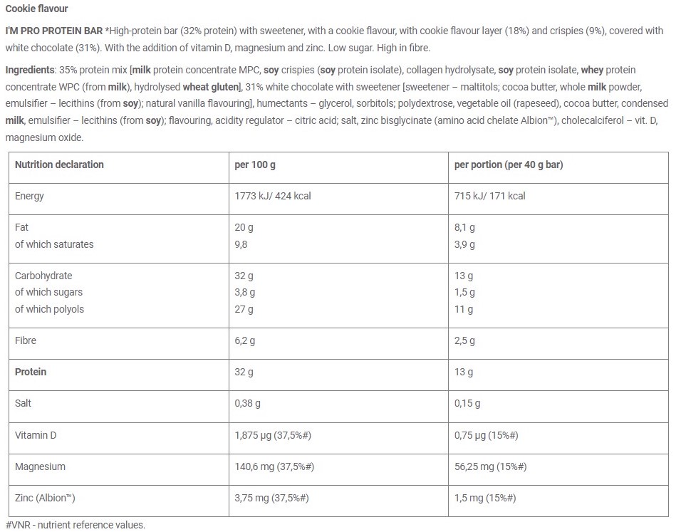 Suggested use: Consume one bar after training or between meals, depending on your protein needs.