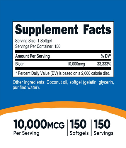 NUTRICOST Biotin Vitamin B7 10000 mcg / 150 Softgels