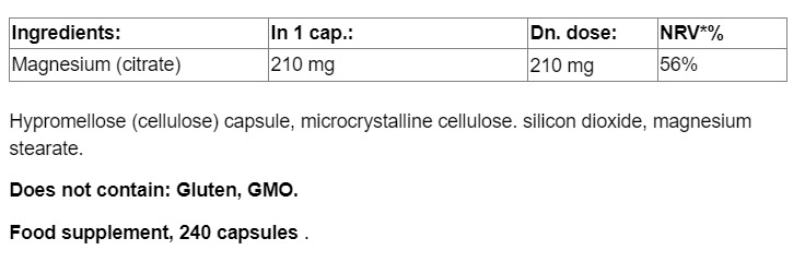 Magnesium Citrate 210 mg / 240 Caps