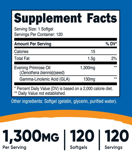 NUTRICOST Evening Primrose Oil 1300 mg / 120 Softgels
