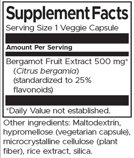 Ingredients: Bergamot Fruit Extract (Citrus bergamia, standardized to 25% flavonoids)