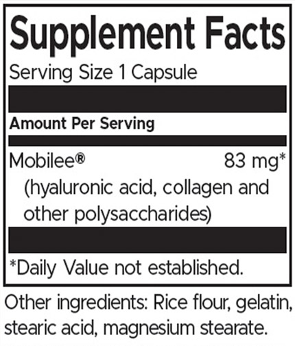 Ingredients: Mobilee® (hyaluronic acid, collagen and other polysaccharides)