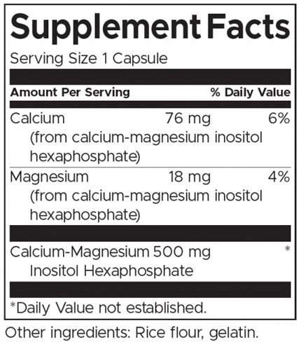 Ingredients: Calcium-Magnesium Inositol Hexaphosphate (providing calcium, magnesium )