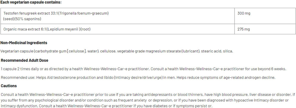 NATURAL FACTORS Regenerlife™ TestoVitality with Organic Maca Extract / 60 Vcaps