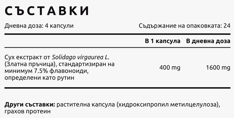 Ingredients: Solidago virgaurea extract (standardized to 7.5% flavonoids as rutin)