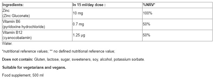 Zinc + Vitamin B6 + B12 / 500 ml