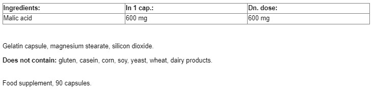 ECOLOGICAL FORMULAS Malic Acid / 90 Caps