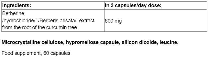 Ingredients: Berberine hydrochloride – 200 mg (from Berberis aristata extract)