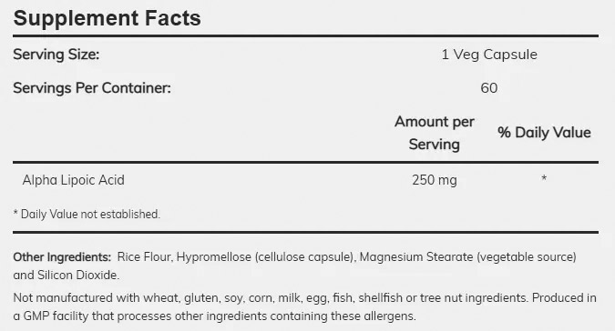 Alpha Lipoic Acid 250 mg / 120 Vcaps