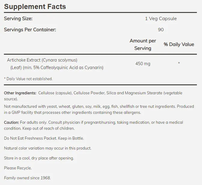 Artichoke Extract 450 mg / 90 Vcaps