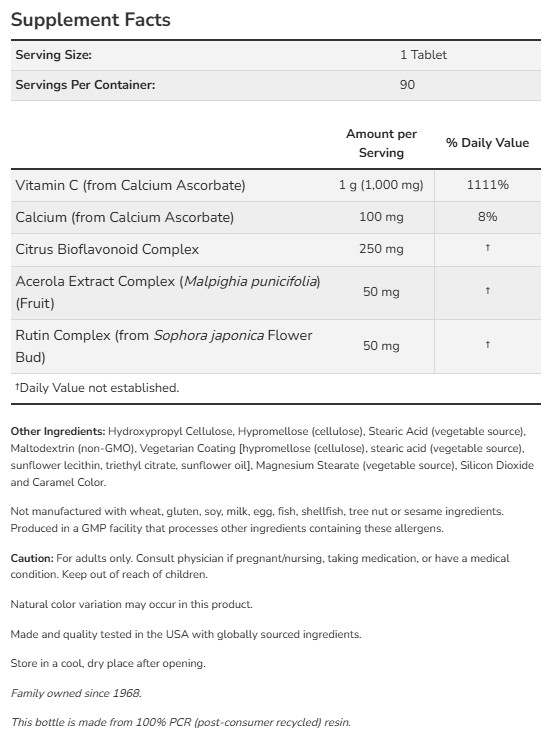 Vitamin C-1000 Complex with 250mg Bioflavonoids - Buffered / 180 Tabs
