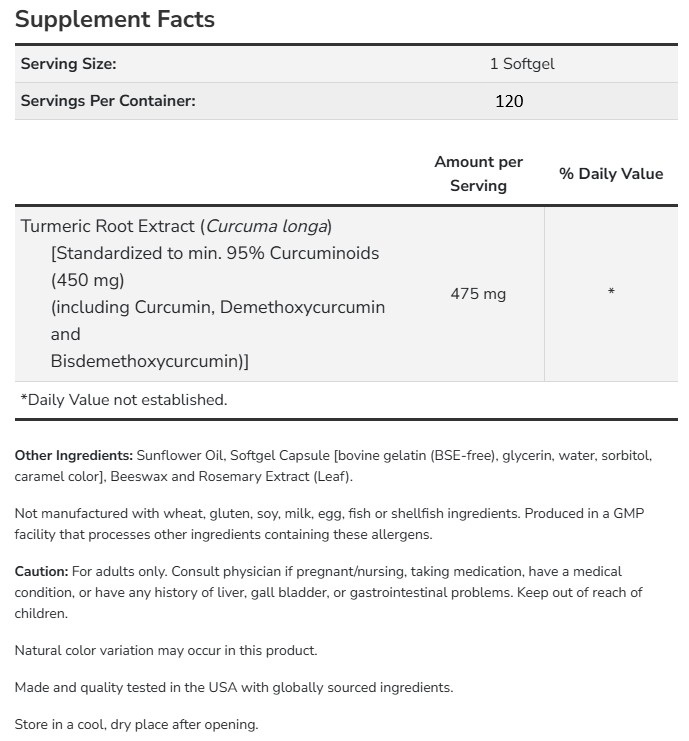 NOW Turmeric Curcumin 475 mg / 120 Softgels
