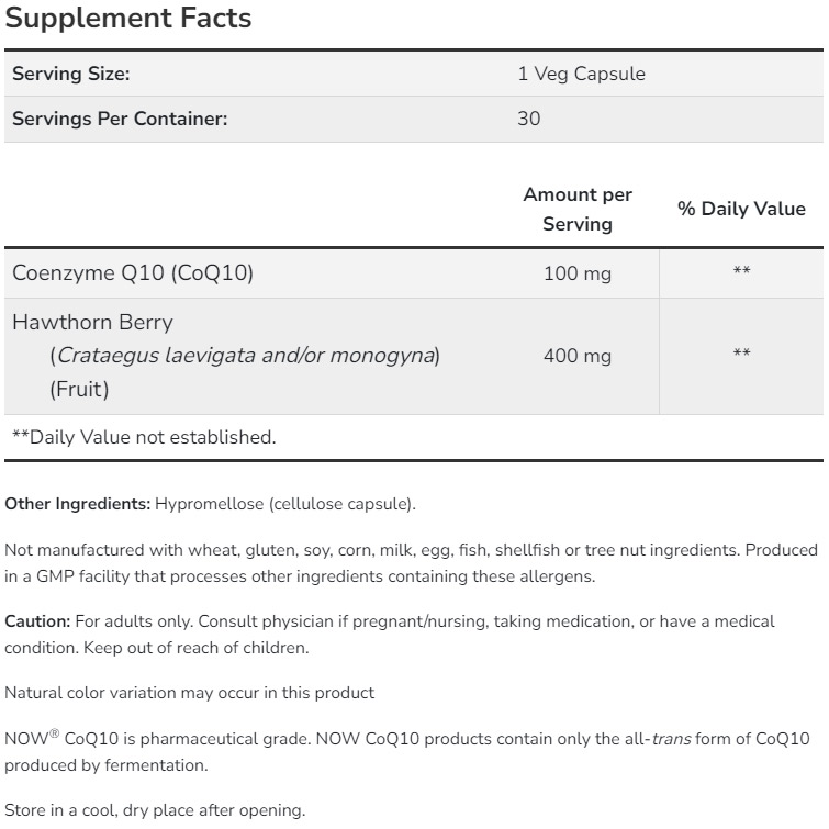 NOW CoQ10 with Hawthorn Berry 100mg / 180 VCaps