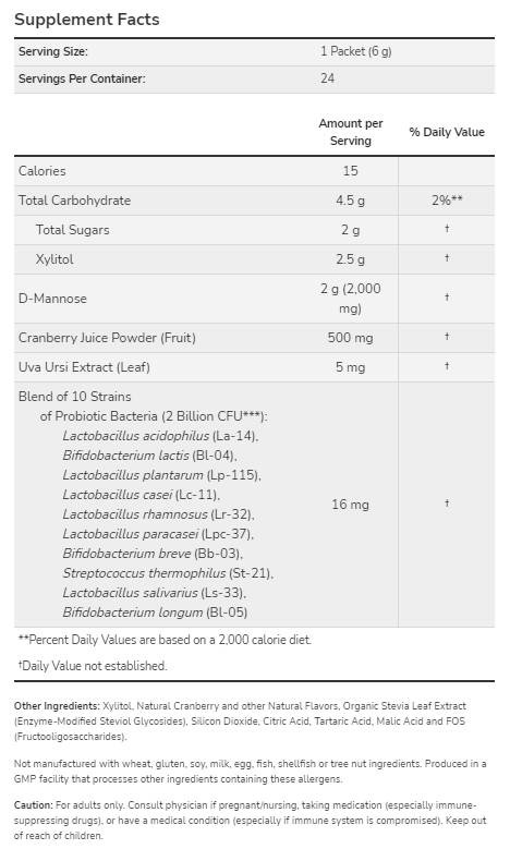 NOW Cranberry Mannose + Probiotics / 24 Packets