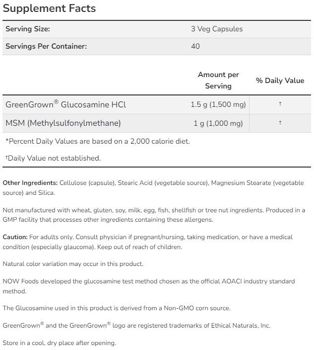 NOW Vegetarian Glucosamine & MSM / 60 Vcaps