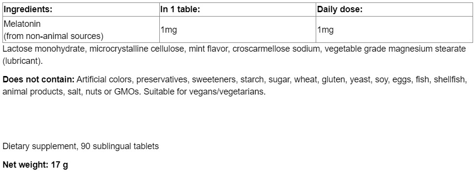 Properties and benefits of Melatonin 1 mg Sublingual Tablets by Webber Naturals: