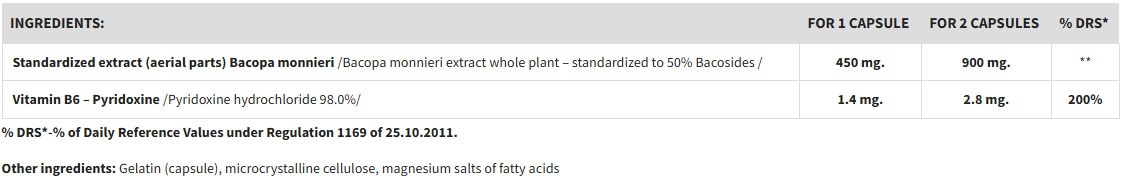Ingredients: Bacopa monnieri extract , Pyridoxine hydrochloride