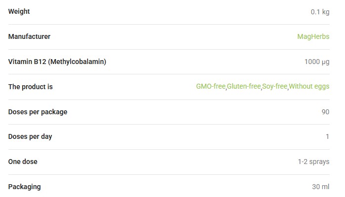 MAGHERBS Liposomal Vitamin B12 Spray / 30 ml