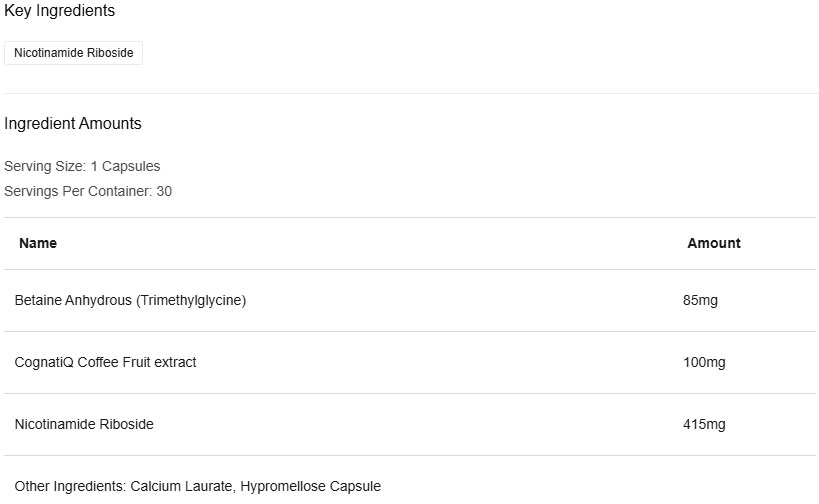 Nicotinamide Riboside, CognatiQ Coffee Fruit extract, Betaine Anhydrous (Trimethylglycine)