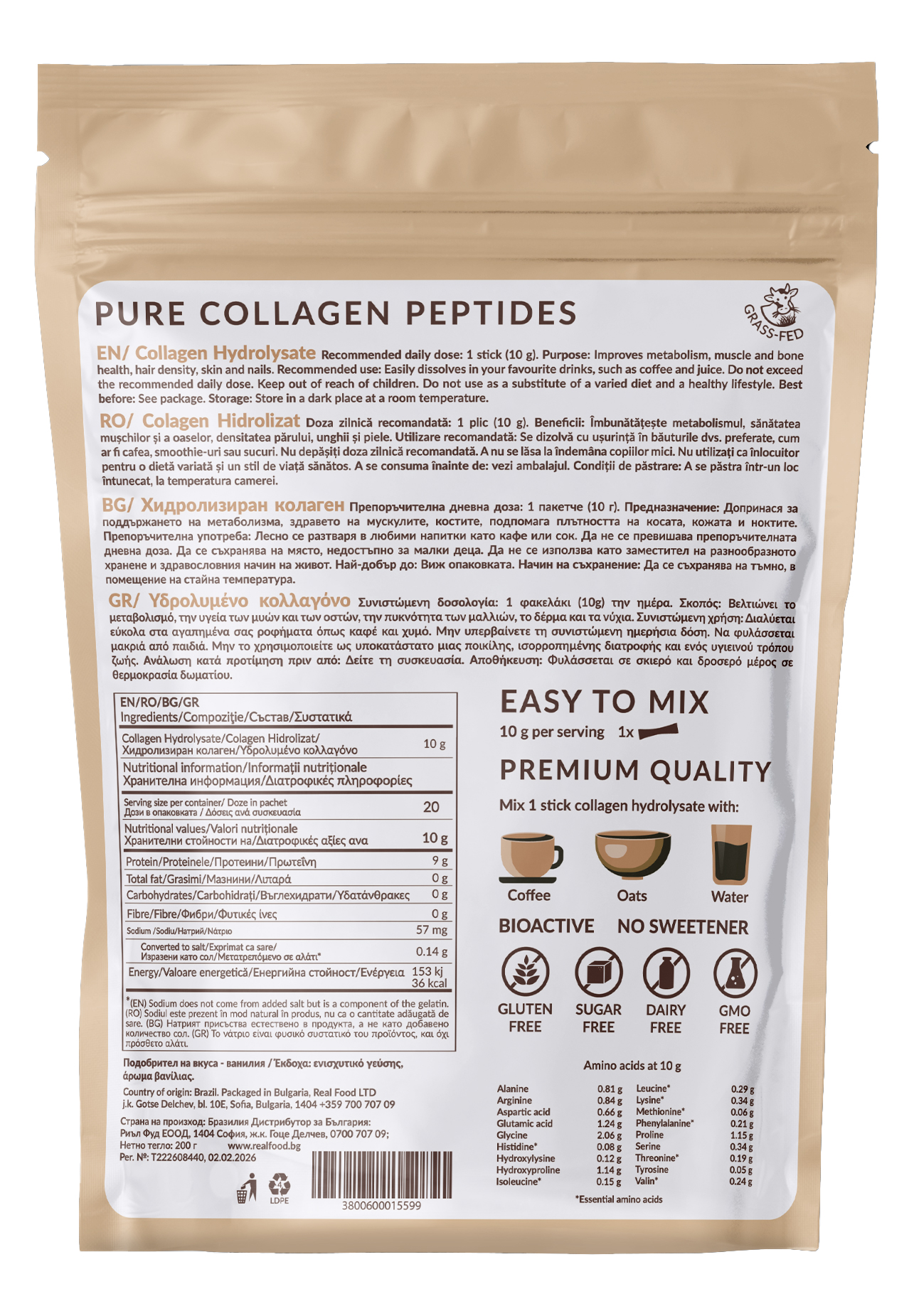 REALFOOD Collagen Hydrolysate / 20 x 10 g Sachets / Natural Vanilla Flavour