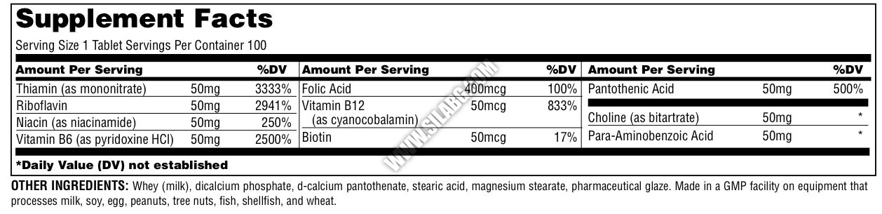 Vitamin B Complex contains 8 required vitamins plus two co-factors.