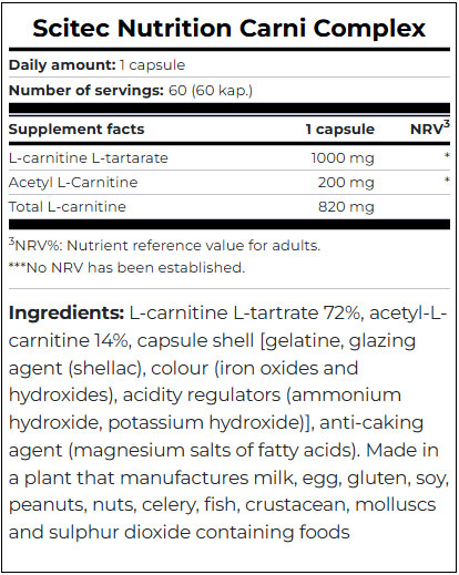 Carni Complex from Scitec Nutrition is a concentrated formula that supports fat metabolism and energy production during physical activity.