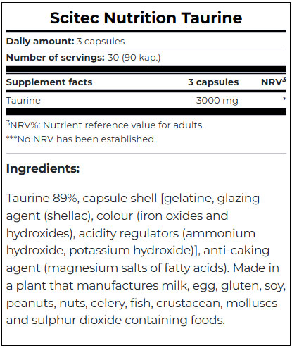 Taurine from Scitec Nutrition supports energy production, endurance, and cellular hydration during physical exertion.