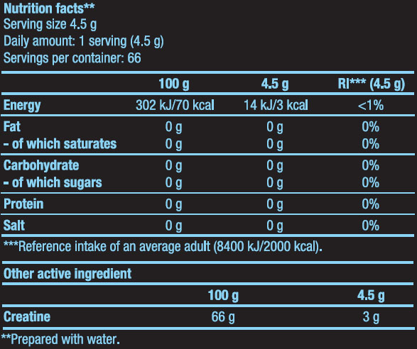 Suggested use: Take 1 serving daily, mixed with 100-150 ml of water. Either before working out or after.
